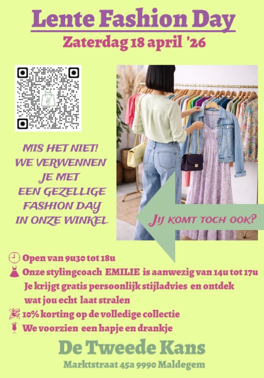 Op zaterdag 18 april maken we er bij De Tweede Kans een extra gezellige dag van, want dan organiseren we onze Lente Fashion Day!