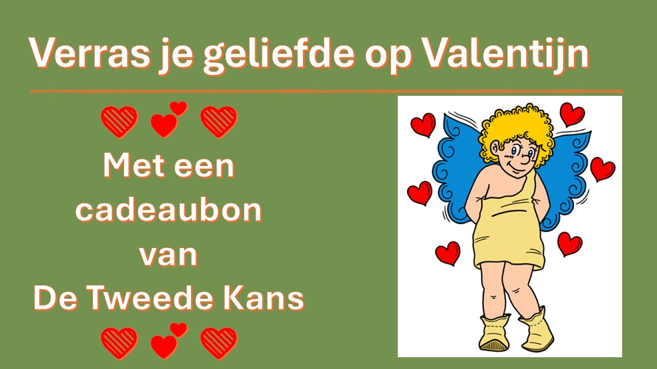 Nog op zoek naar een origineel cadeautje? In de winkel vind je nog heel wat Valentijnsgeschenken, en een cadeaubon van De Tweede Kans is natuurlijk altijd een schot in de roos.